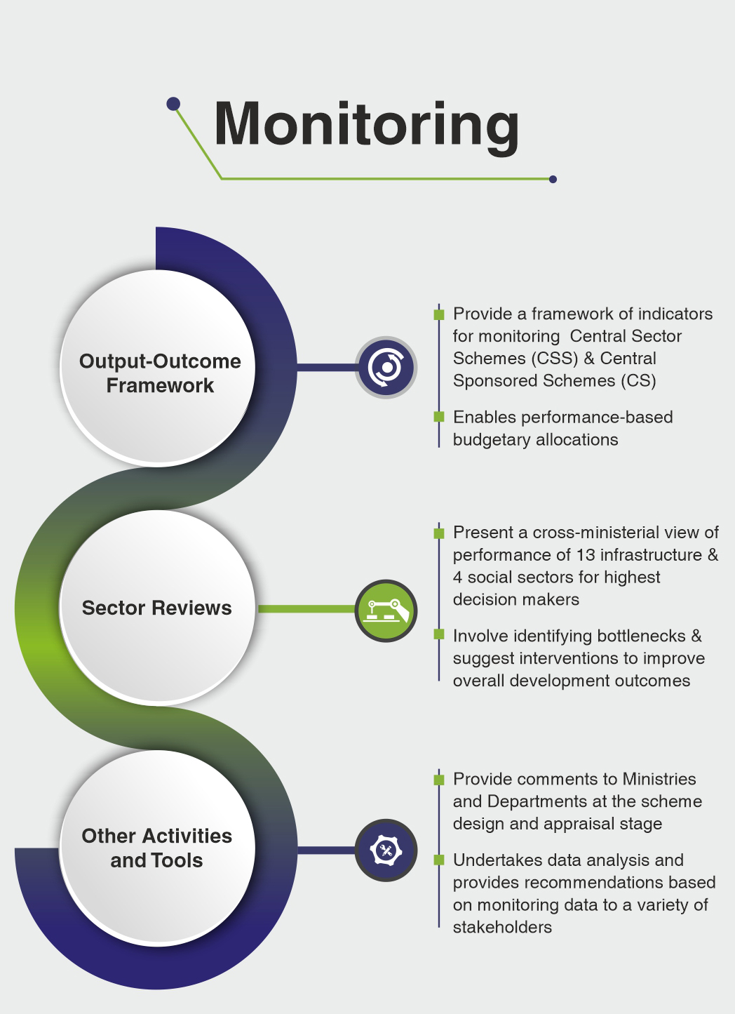Monitoring refers to the continuous process of assessing progress of a scheme/project towards defined objectives and goals. It involves identification of relevant indicators and their data sources, periodic data collection and real-time processing of information for reviewing the implementation of a scheme/project. This information may also form the basis for future evaluations. Effective monitoring is the key to ensuring transparency and accountability in seamless implementation and program delivery to the intended beneficiaries.